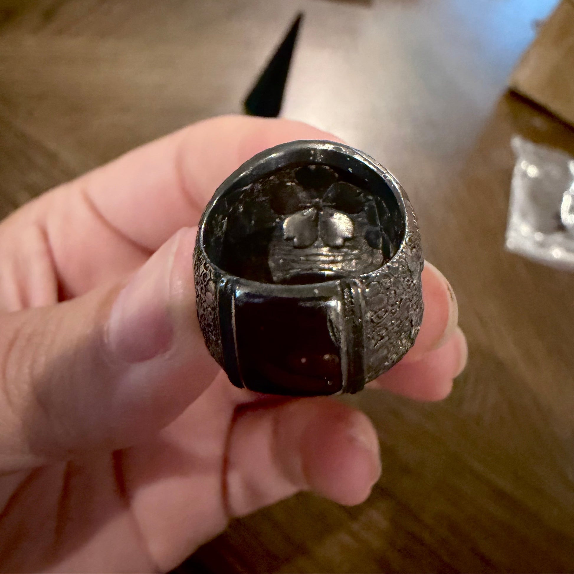 Size 5 Black Rhodium Japanese Garden Skull On Hand