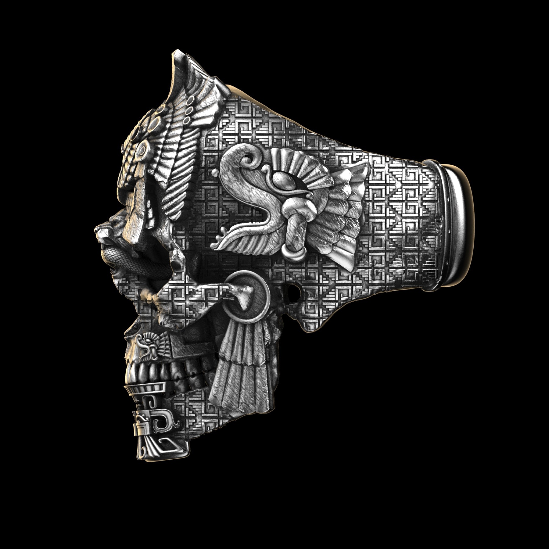 The Meso Skull Ring. Named for Mesoamerica such as Mayan and Aztec. High detail and high finish cast sterling silver