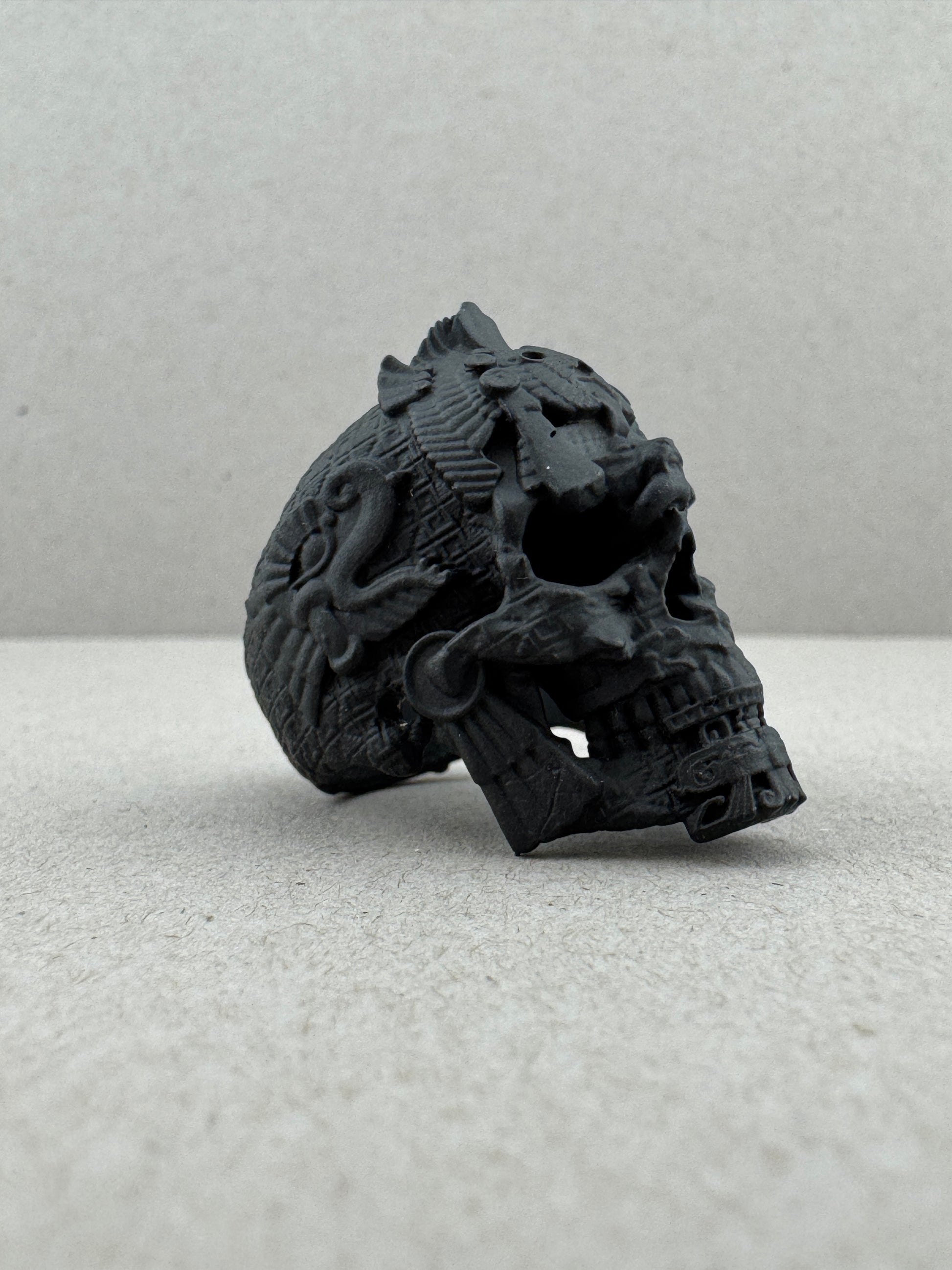 Sz7.5 Black Ceramic on Brass MesoSkull Ring